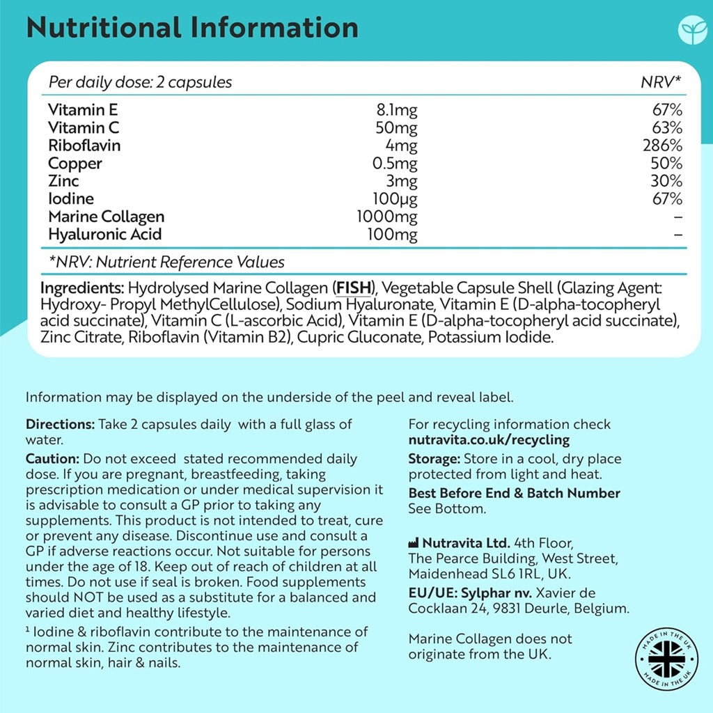 - كبسولات الكولاجين البحري بتركيز 1000 ملج، مدعَّم بحمض الهيالورونيك وفيتامين ج وهـ