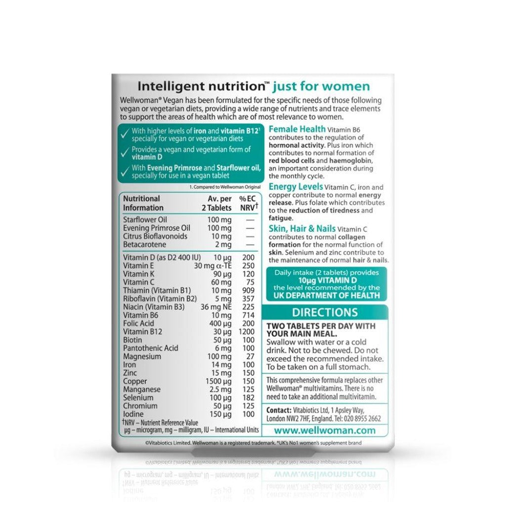 Wellwoman Vegan is the first comprehensive multivitamin specifically designed for women following a vegan lifestyle.