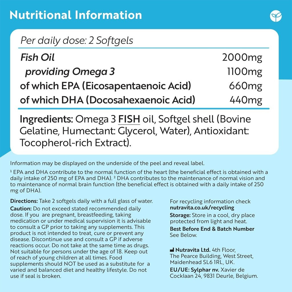Omega 3 Fish Oil 2000 mg 240 Capsules - Nutravita Omega 3 Fish Oil 2000 mg Softgels 240's